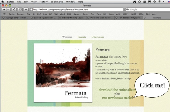 I’m not quite as bad with learning music as I am with categorizing it, but I don’t like learning just one movement of a piece. Sometimes I have to since the other movements may be simply too difficult (and often too fast), but I was happy to discover the second movement of the “Suite castellana” by Torroba was quite playable and has in fact become one of my favorite pieces to play. I had already recorded the first movement of the suite, “Fandanguillo,” on Fermata. Well, if you learn the first and second movements of a three-movement suite, shouldn’t you really learn the last one, too? And by that, I mean: aren’t you compelled to do so? Well, I was, so I’ve added the two new movements to the Fermata web site. You can download the two new “bonus” tracks as a zip file at the welcome page, like this: